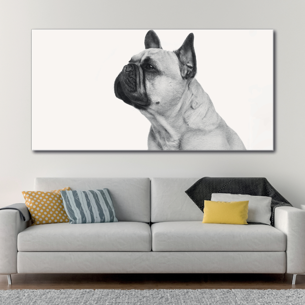 Schilderij met een afbeelding van een zwart-wit Franse bulldog profiel – Canvas afdrukken