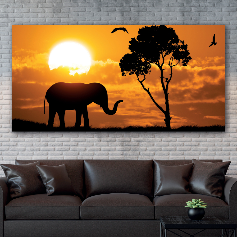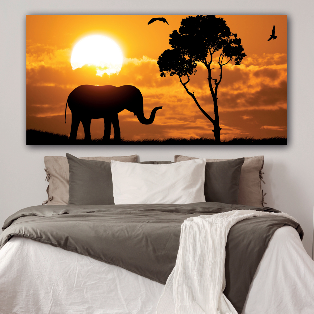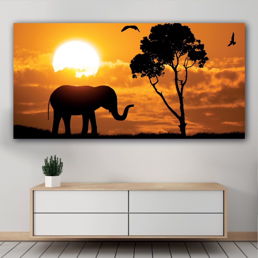 Schilderij met silhouet van olifant – Canvas afdrukken