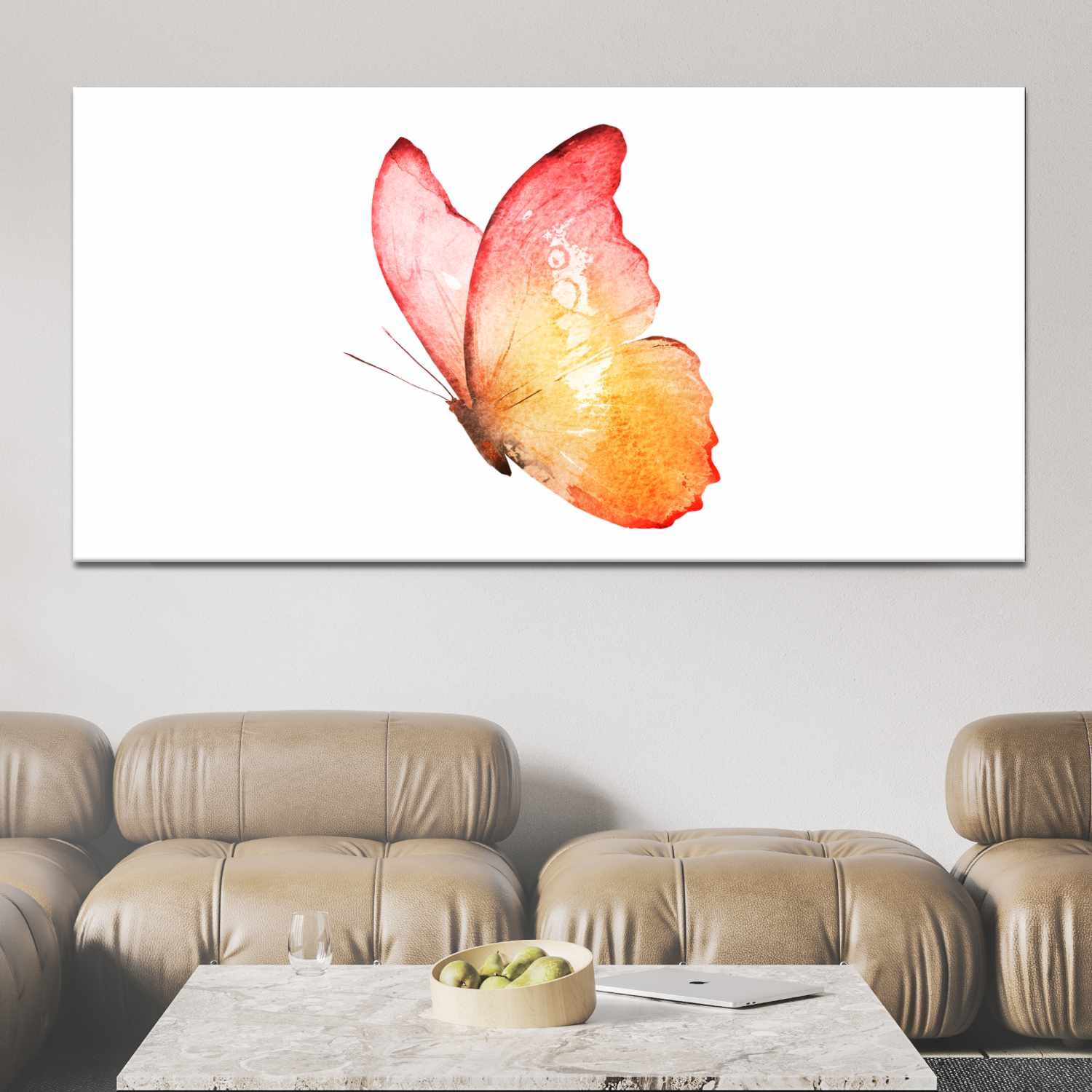 Schilderij met een afbeelding van een vlinder geïsoleerd op een witte achtergrond – Canvas afdrukken