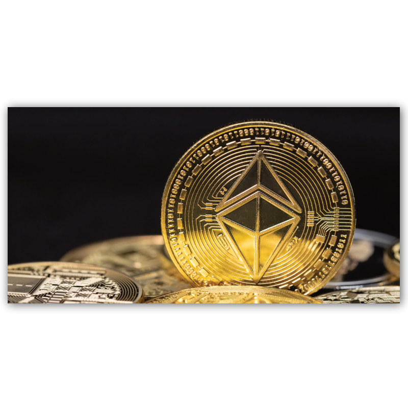 Op hetGolden Ethereum Board staan op een zwarte achtergrond munten afgebeeld van de “Bitcoin Killer”, een digitale munt die alle concurrenten nu al van de troon ziet stoten. Dit kunstwerk zal perfect passen in uw kantoor, woonkamer of waar dan ook in uw huis of kantoor.