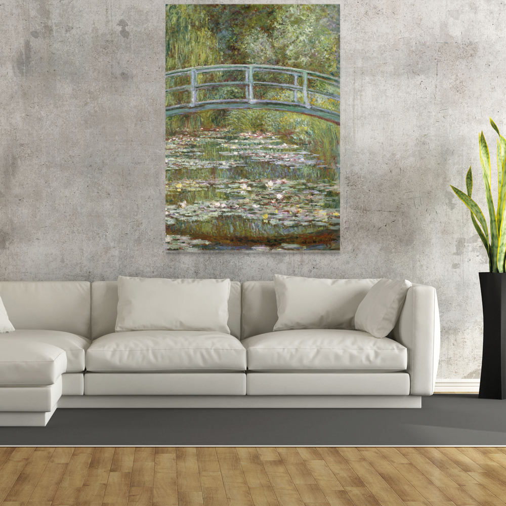 De watertuin van Claude Monet in Giverny is versierd met een klein Japans houten bruggetje. Deze schilderij met de afbeelding van het bruggetje zal uw flat nog meer verfraaien.