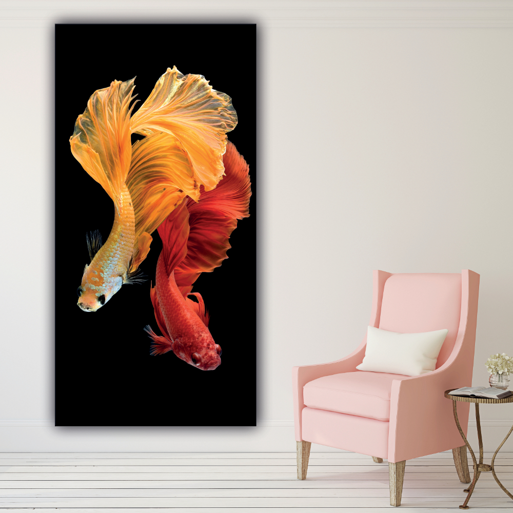 Schilderij met een afbeelding van een geel en oranje Siamese vechtvis – Canvas afdrukken