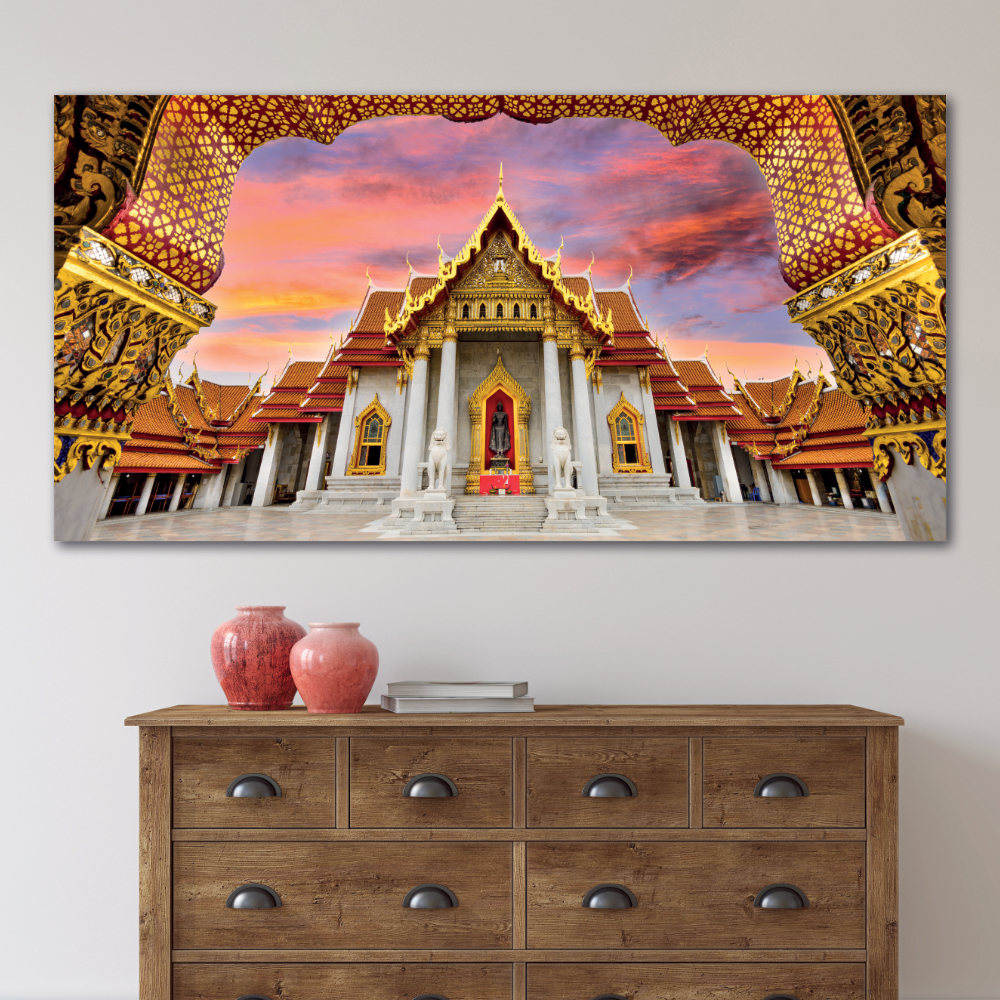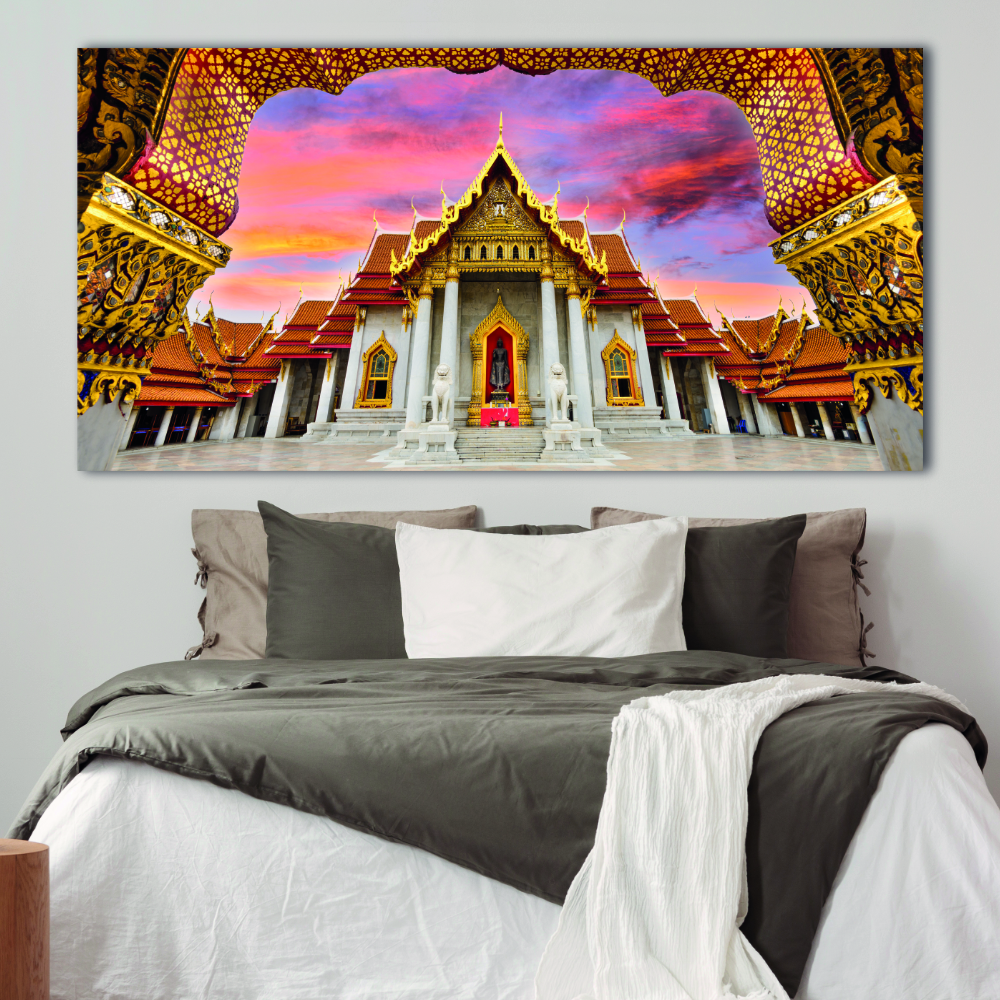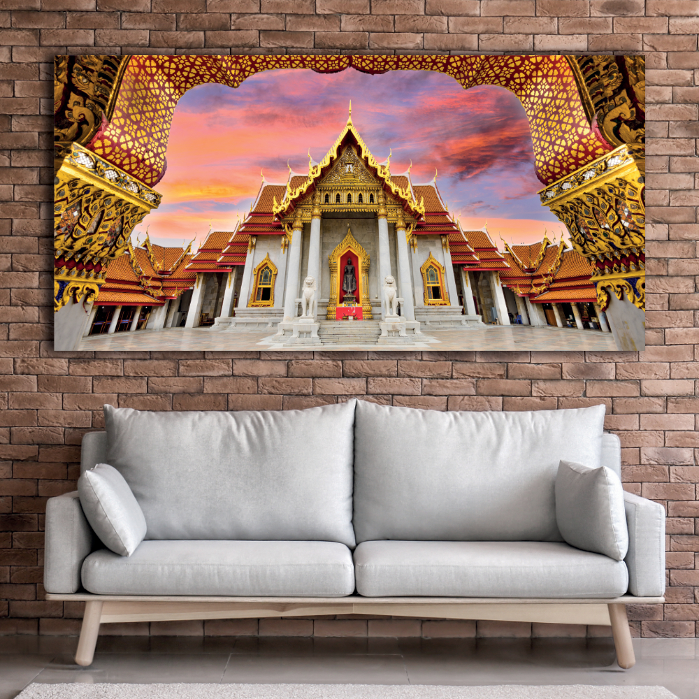 Schilderij met een afbeelding van een marmeren tempel van Thailand – Canvas afdrukken